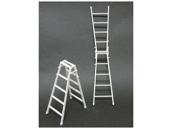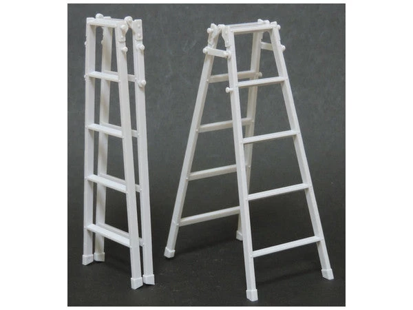 Simple plastic model kit to build stepladder accessories. Contains parts molded in grey plastic.
