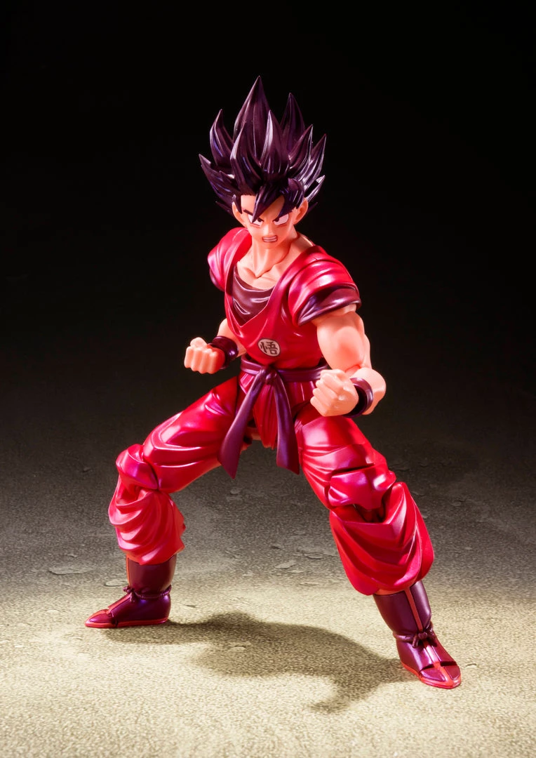 A figure of Son Goku in his epic “Kaioh-ken” form! Finished with beautiful pearlescent parts to accentuate this dynamic move’s power, you can recreate battles with Captain Ginyu, Vegeta, and Frieza (Sold separately)! The figure includes an optional head, two optional expression parts, and two pairs of optional hands.