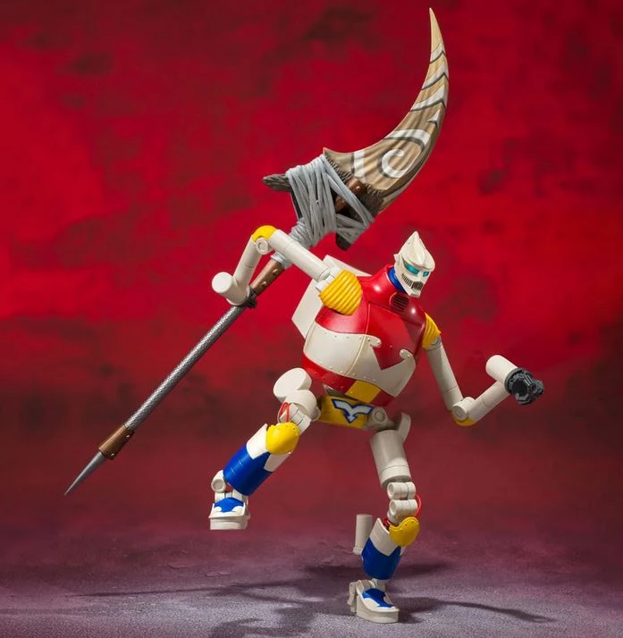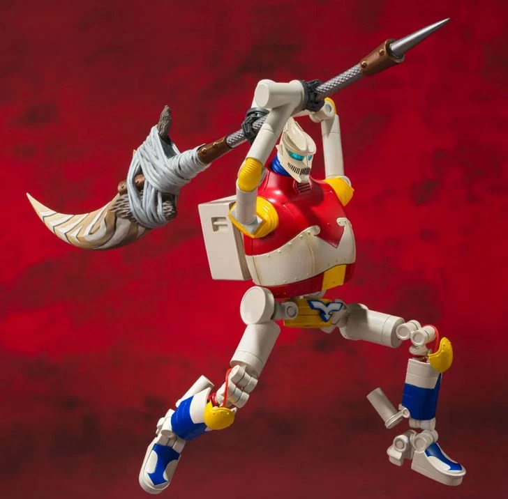 The set includes options for replicating three forms of Jet Jaguar: as he appeared during the climactic battle, with an Anglias spear for Jet Jaguar β, and with a flight pack for Jet Jaguar β flight mode. Also includes an unpainted Yun Arikawa figure that can ride on Jet Jaguar β’s shoulder in flight mode!