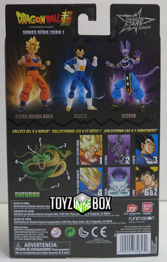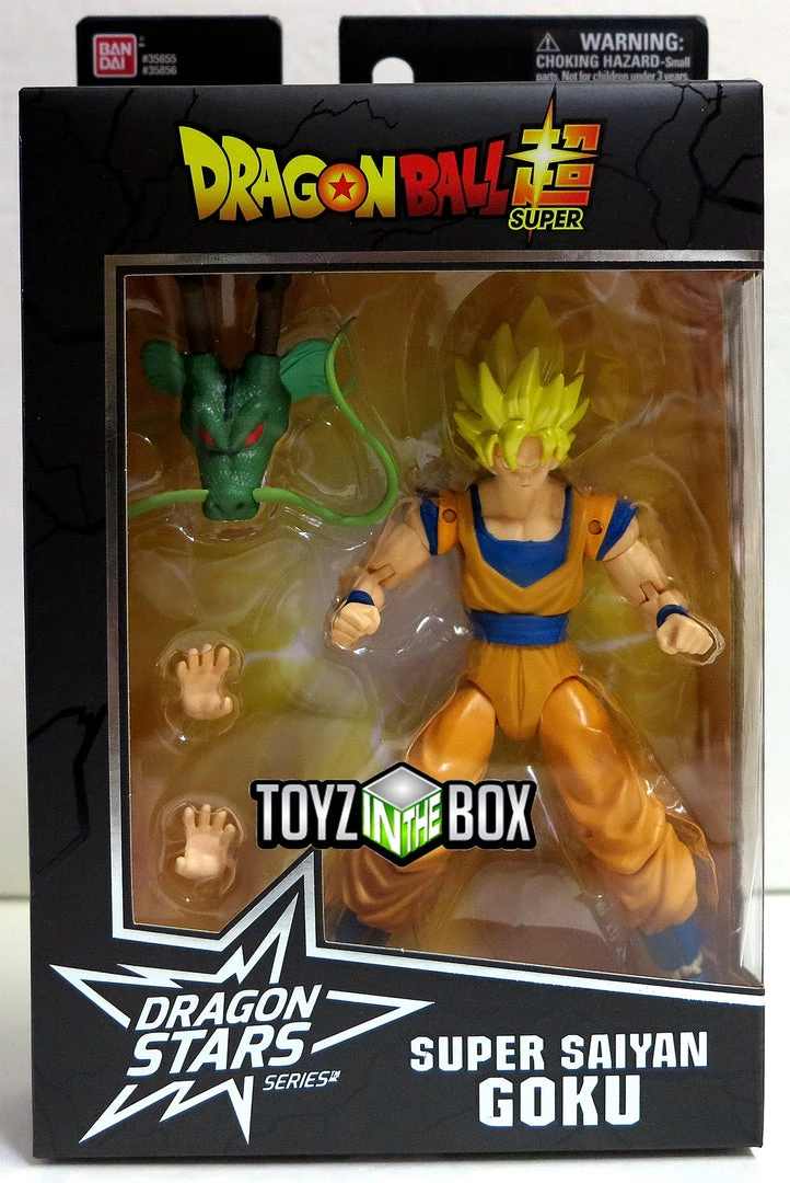 From the Dragon Ball Stars Wave 1 comes this Super Saiyan Goku action figure that is highly detailed and articulated. Standing at 6 1/2-inches tall with over 16 points of articulation and additional hands, Super Saiyan Goku can be posed in hundreds of positions. The figure comes packaged with an exclusive collectible piece that can be combined to form the dragon Shenron! Each figure sold separately.