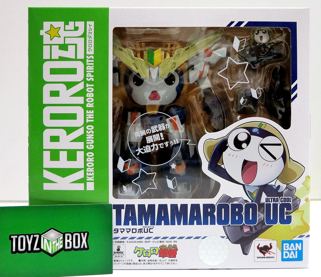 KERORO SPIRITS is an all new action figure series intended for discriminating collectors, dedicated to bringing the latest and greatest toymaking technologies to a series long beloved by fans: Sgt. Frog! Cutting-edge CAD techniques plus the talented eyes of veteran craftspeople combine to create this feature-filled line of classic characters. TAMAMAROBO UC includes a broad range of weapons and accessories that can be combined for fun display possibilities. The flying saucer can be detached from the larger mecha. The set includes:・TAMAMAROBO UC, a Tamama figure・Flying saucer・Beam rifle・Armor TS, Armor TN, Missile pods (x2)・Shield・rear slaster unit・Fin antenna