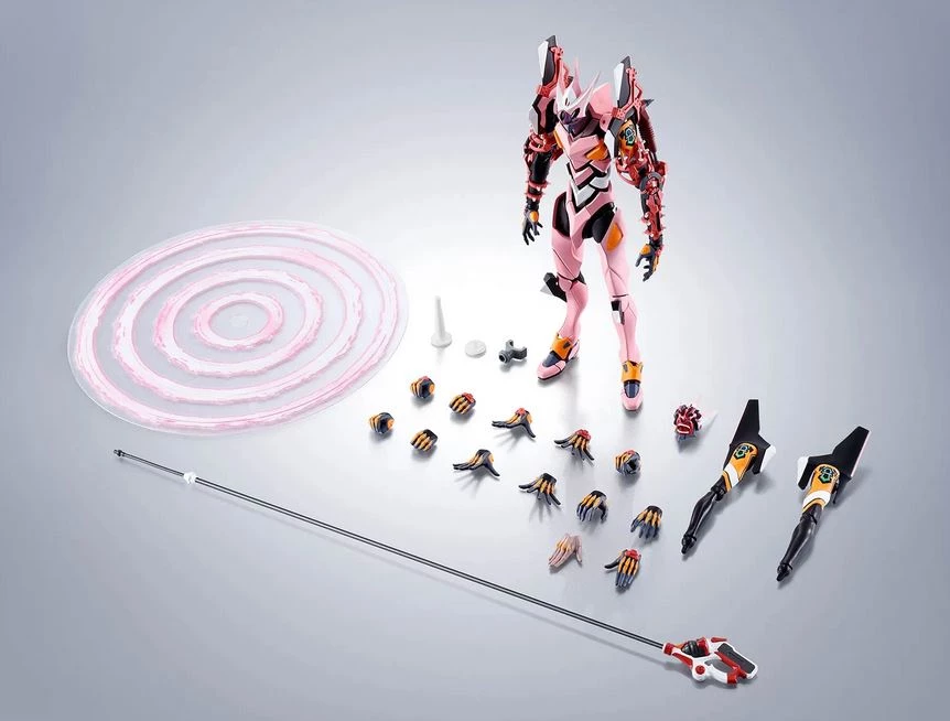 From “Evangelion: 3.0+1.0 Thrice Upon a Time” comes the Evangelion Unit-08γ, featuring all of the faithful proportions, detailing, accessories, and pose-ability fans have come to expect from the ROBOT SPIRITS series! Effect parts let you re-create dramatic scenes. Attach optional reinforcements to the arms to re-create the incredible appearance at the climax of the film!