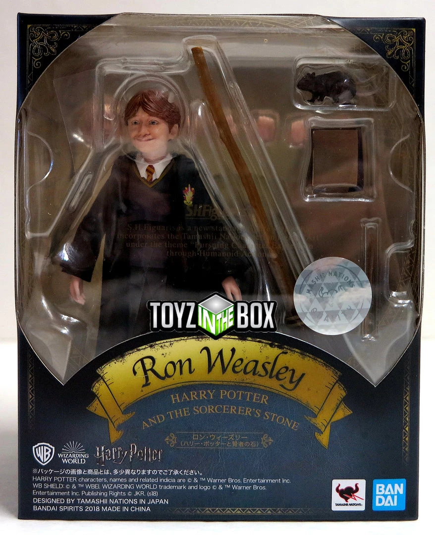 Harry Potter’s friend Ron Weasley joins the S.H.Figuarts series! This accurately sculpted, digitally colored, and highly posable action figure includes Ron’s rat Scabbers and a magic broomstick. The set also includes an optional facial expression part, three pairs of optional hands, a textbook, and a robe.