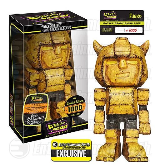 Autobots roll out! This Classic Transformers Autobot looks primed and ready for battle! This Transformers Battle Ready Bumblebee Hikari Premium Japanese Vinyl – Entertainment Earth Exclusive is a limited edition of only 1,000 pieces and is individually numbered. Bumblebee is given the Hikari Premium styling, as he stands 6-inches tall in a distressed and battle-worn look! The Transformers Battle Ready Bumblebee Hikari Premium Japanese Vinyl – Entertainment Earth Exclusive is hand-painted with even more paint and special attention (over 75 paint applications) to detail give this Premium figure an even more spectacular look! Bumblebee comes in a stylish and displayable window box, for all your Transformer-collecting friends to drool over!