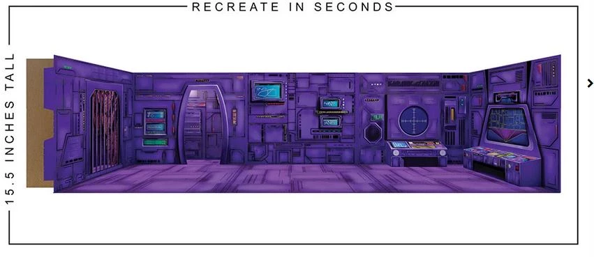 The Headquarters Pop-Up gets the deluxe treatment this time around, and this is a must have item for any fan. This well crafted Pop-Up gets the Supersized treatment, and is now a massive playground for your action figures to explore. Each of the three highly detailed wall panels create a massive background for your toy photo shots. Also included are two highly detailed walls with an interior that provides a new level of depth for your action figure needs. The two 3D control panels create a unique set experience with countless possibilities for your toy photography or display desires. Also packed in is one ground panel to help create the perfect setting for any collectible you have. Standing at 15.5 inches tall, this Pop-Up is the perfect backdrop to have your action figures assemble at for their next adventure.Â