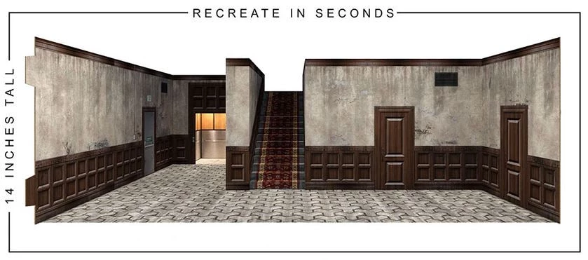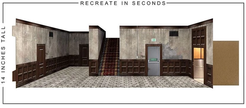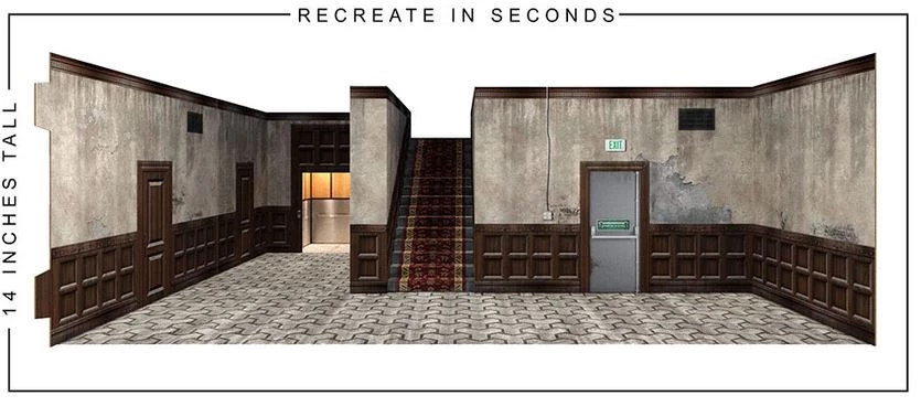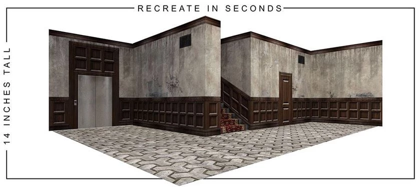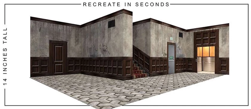The Hallway Pop-Up features incredible detail of a narrow passage that is showcased in each of the five highly detailed wall panels. The staircase and 3D wall allow all sorts of different action figure picture possibilities. Allow your action figures to surprise someone with the 3D elevator that is also included in this set. Or use the elevator to escape to a new floor deep inside the Multiverse. Standing at 14 inches tall, and including two flooring panels, this new addition to the Multiverse is set to give your action figures a new place to create chaos deep inside the Multiverse of Extreme-Sets Pop-ups.
