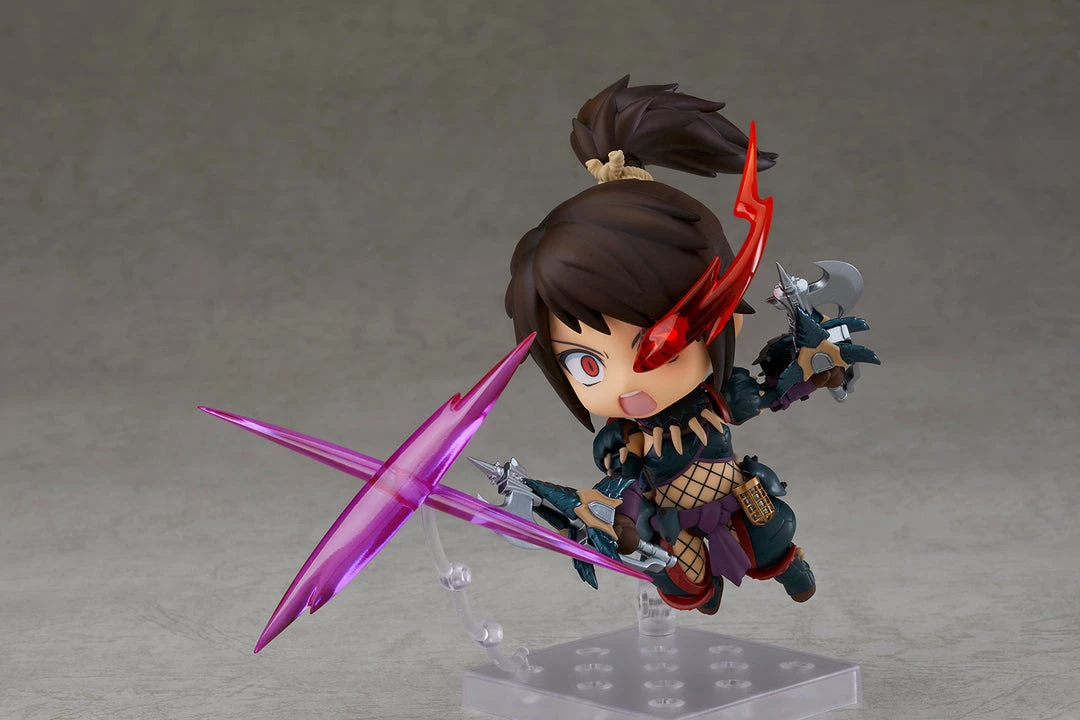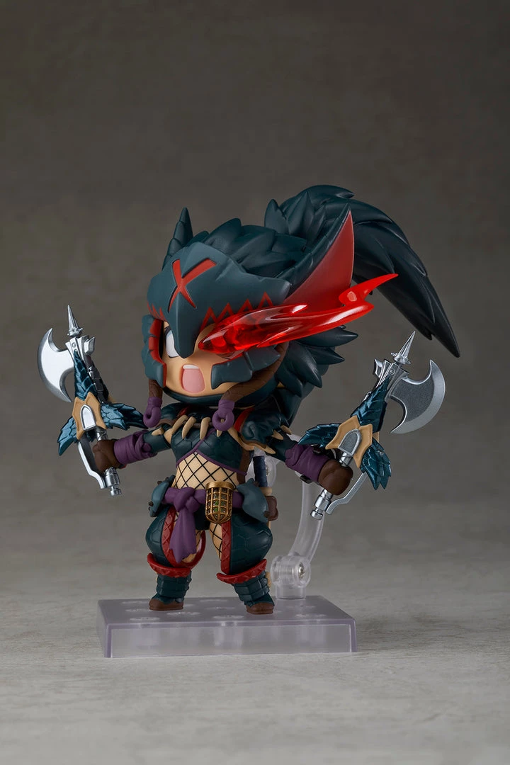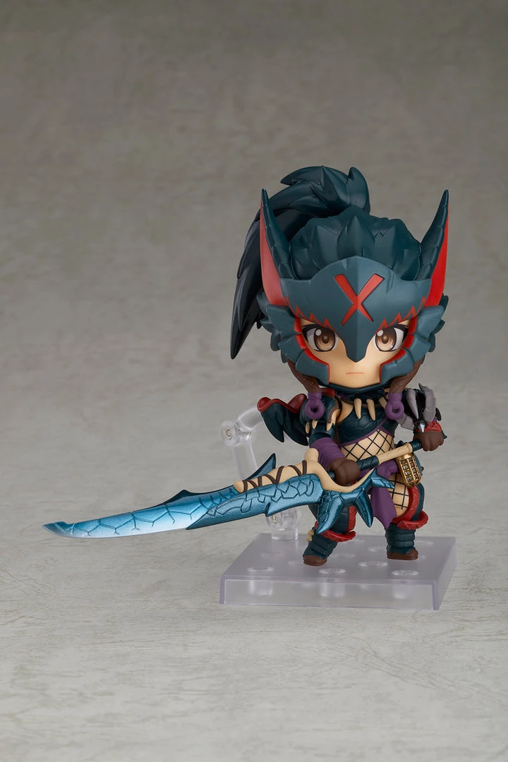 One who hunts under the cover of twilight, moving like the wind. From the PlayStation®4/PC (Steam) game “MONSTER HUNTER WORLD: ICEBORNE” comes a fully articulated Nendoroid of a female hunter in Nargacuga Alpha Armor. This special DX version includes all the parts that are included with the standard version together with bonus parts for even more display options! She comes with two face plates including a reticent standard expression and a crazed expression. The Hidden Saber is included along with two carving knives and a throwing knives effect part. Additionally, the DX version comes with an interchangeable head part for displaying the hunter with a ponytail haircut, the Hidden Tomahawk I Dual Blades, a critical hit effect part, a Demondrug consumable and an original eye glint effect part made for the Nendoroid, allowing you to enjoy the world of “MONSTER HUNTER WORLD: ICEBORNE” even more! |