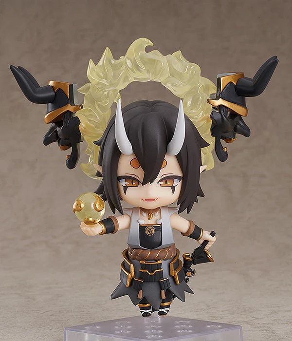 “Are you challenging the mighty Otakemaru?” From the smartphone game “Onmyoji” comes a Nendoroid of the strongest Yokai of Suzukayama, Otakemaru! He comes with two face plates including a standard expression and a confident smiling expression. Optional parts include his weapons, the Yasakani no Magatama and Lightning Magatama, along with the lightning and masks on his back. Additional hand parts are also included for recreating poses from the game. Be sure to add him to your collection, and have fun displaying him with other Nendoroids from the “Onmyoji” universe! Set Contents: |