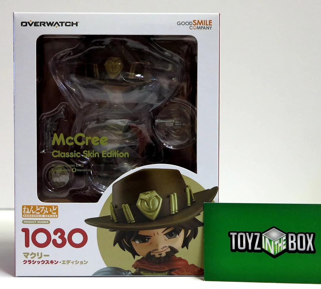 | “Justice ain’t gonna dispense itself.” From the globally popular multiplayer team-based shooter Overwatch®, comes the eleventh Nendoroid figure from the series – McCree! The Nendoroid and his cape are fully articulated, allowing you to display him in action-packed poses befitting of the gunslinger. His cape and hat are also removable, so you can display him in a more lightly equipped appearance not often seen in-game. He comes with a standard version as well as a spinning version of his Peacekeeper revolver. In addition, he comes with two face plates, a flashbang, Deadeye effect parts and the tumbleweed that rolls in front of him while using Deadeye! Recreate all of your favorite skills and poses. Finally, a clear effect sheet based on his “Rolling Into Action” highlight intro is also included! Be sure to add him to your collection and display him with the previously announced heroes in the Overwatch® Nendoroid series!