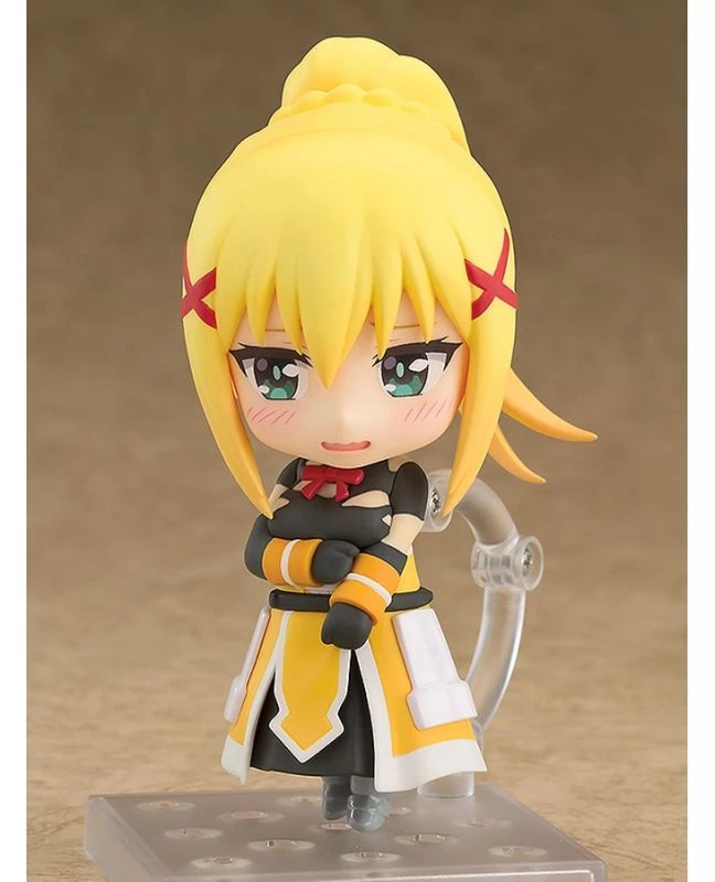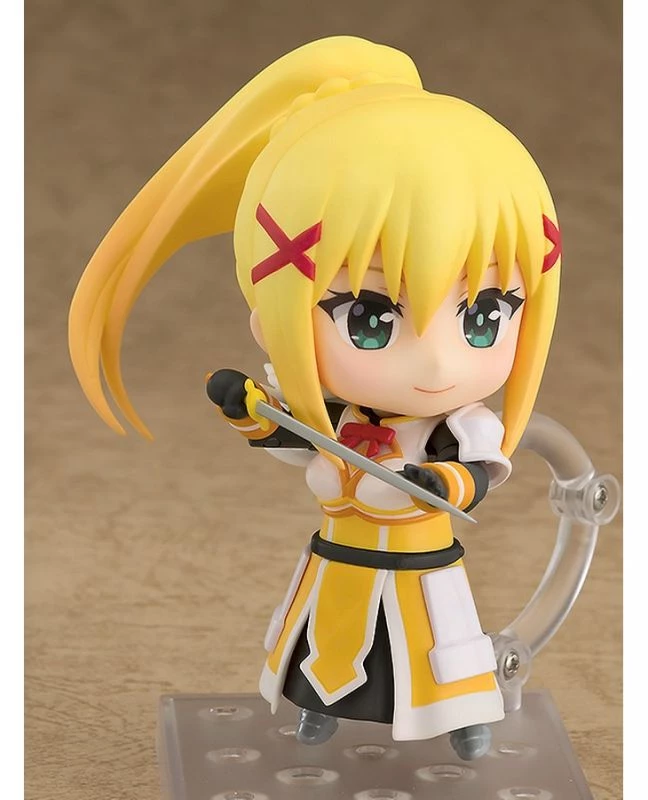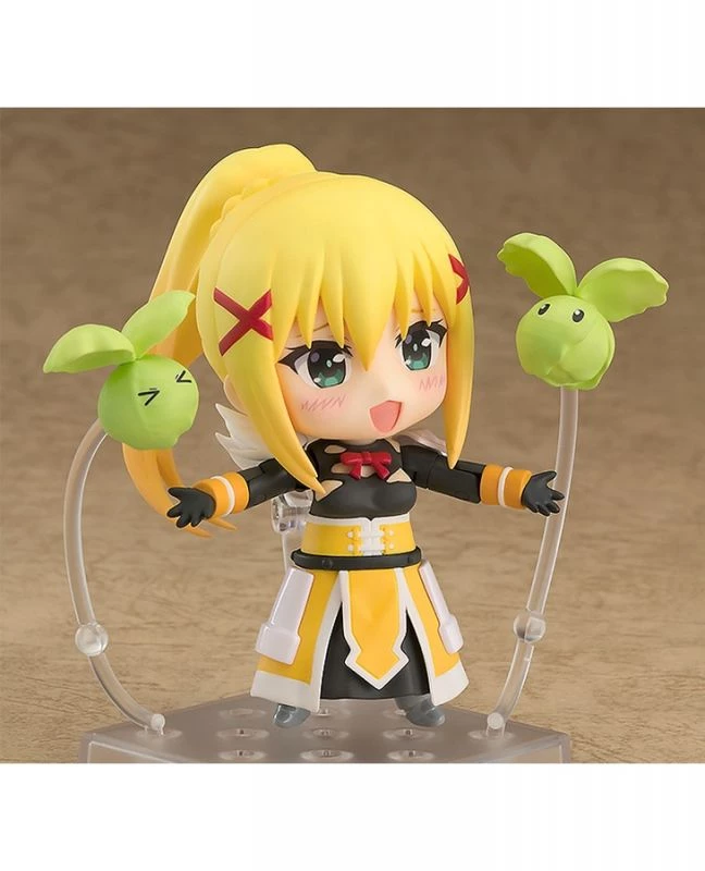 A Nendoroid of the masochistic Crusader! From the anime series “KONO SUBARASHII SEKAI NI SYUKUFUKU WO! 2” comes a rerelease of the Nendoroid of the blue-eyed, blonde-haired masochistic knight – Darkness! She comes with three face plates including a composed smiling expression, a euphoric expression with a slight blush on her cheeks as well as a worried, blushing expression that makes you wonder what she is anticipating! Optional parts include her sword as well as articulated arm parts that allow for all sorts of different poses. In addition, two flying cabbage monsters as well as an alternate upper body part with her clothes damaged is also included. Be sure to display her with the separately sold Nendoroid Aqua and Nendoroid Megumin! |