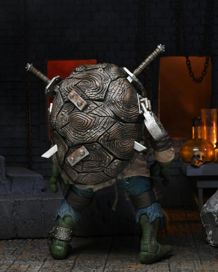 | NECA is thrilled to announce a new addition to its Universal Monsters x Teenage Mutant Ninja Turtles action figure collection. The line pays tribute to the world’s most famous turtles and Universal’s icons of horror. Leonardo as The Hunchback reimagines the Turtle as Ygor, faithful assistant to the great Dr. Frankenstein… Or so he would have you believe!  For this menacing mastermind has nefarious plans inside even more nefarious plans, and he doesn’t even need to hide them up his sleeve – there’s plenty of space on his back! Yes, the massive shell of The Hunchback opens to store the many included accessories: brain in a jar, two katanas, interchangeable hands, shovels, bone, skull, and flame effects that attach to the katanas to form torches… all tools in his sinister plans for revenge on the mysterious vampire cult that disfigured him.  Comes in collector-friendly window box packaging with opening flap featuring a custom illustration.  (Raphael Sold seperately) |