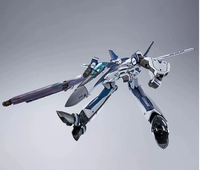 A new Valkyrie launched from Japan into the world! A special item celebrating the anniversary of the Macross series, this is a special colored edition of the VF-25 featuring a blue-hued “Messiah” scheme.