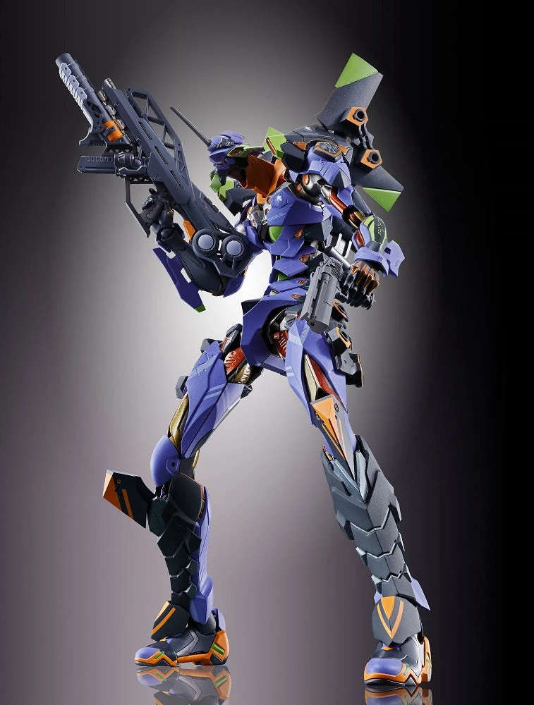 | The designer of Evangelion, Ikuto Yamashita, has joined forces with Bandai to create this METAL BUILD edition of the famed character, capturing its steel-and-muscle appearance like no other figure has before. The body features diecast metal parts and chrome plating for a luxurious weight and finish. Re-designed from the ground up, this incredibly posable portrayal of the EVA-01 is packed with visual detail and play value. The set includes four pairs of optional hands, a Progressive Knife, a Magoroku Exterminate Sword, a Pallet Rifle, a handgun, a Pallet knife full option, an umbilical cable, a mounting joint, an optional head with goggles, shin armor, a support rod, and a display stand with cage. Â |