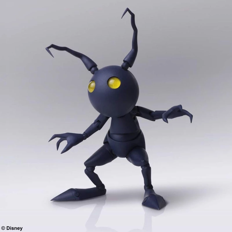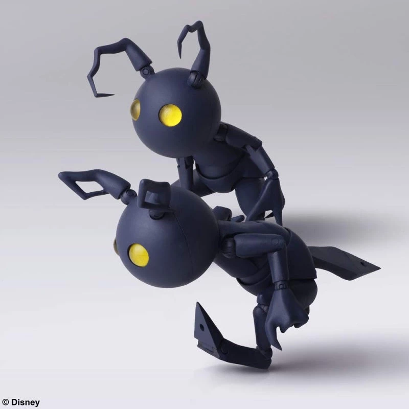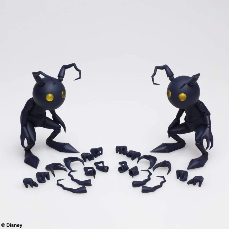 Shadow, the familiar heartless from the KINGDOM HEARTS series, joins the BRING ARTS action figure line as a two-figure set! The whimsical color pallet found in the KINGDOM HEARTS universe is carefully recreated, delivering a figure that carries the characters’ presence felt in the game. With a wide range of articulation paired with various accessories from the antenna to hand parts, allow the Shadow an outstanding variety of comical and cute poses.